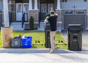 • Allow for 2 ft of clearance between each cart and from other waste materials set out for
