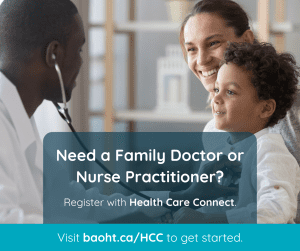 Health Care Connect is free, simple to use, and the fastest way to get attached to primary care in our community. Learn more or register today at baoht.ca/hcc.